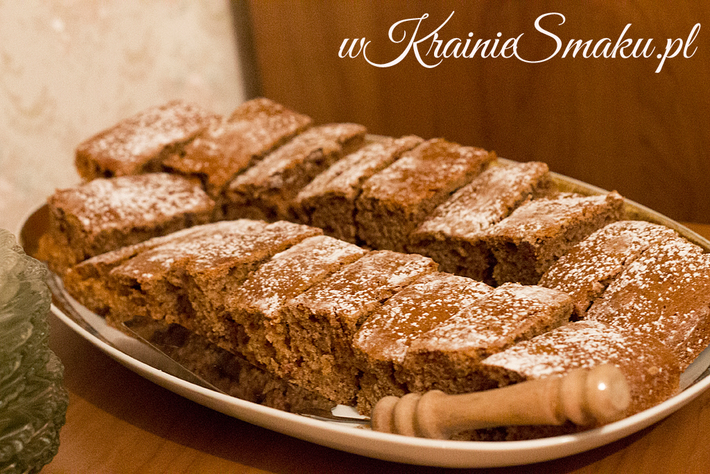Ja z kolei, jakby pierników było mało, również upiekłam a’la piernik – korzenną babkę majonezową przekładaną konfiturą truskawkową. Do tego przez przypadek „zrobiły mi się” trufle piernikowe (przeczytajcie we wpisie czym miały pierwotnie być). Postarałam się jeszcze o wytrawne danie: zapiekankę z ziemniakami, mieloną szynką doprawioną sosem grzybowym i sojowo-grzybowym oraz kapustą z pieczarkami.