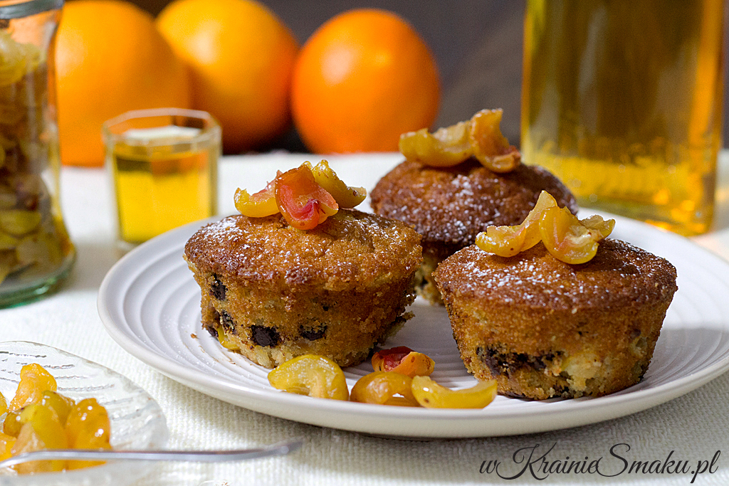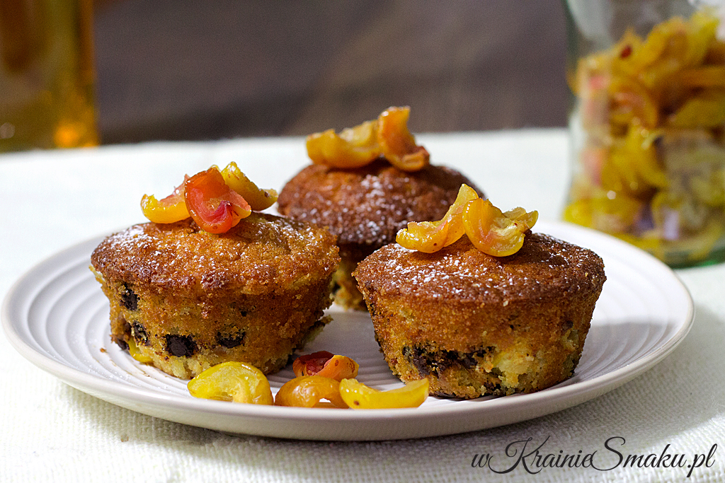 Przy okazji ostatniej wizyty u Rodziców, wypatrzyłam w kuchni owoce pigwowca z nalewki. Mama zabrała się jakiś czas temu za domową produkcję nalewek i całkiem jej to wychodzi 😉 Ostatnie jej dzieło to właśnie nalewka z pigwowca (pyszne), z której nasączone alkoholem owoce postanowiłam jakoś wykorzystać. Ponieważ otrzymałam „zamówienie” na muffinki/babeczki, nie musiałam się szczególnie głowić. Trochę zmodyfikowałam przepis na pomarańczowe babeczki – pieguski i tak oto otrzymałam te bardzo wilgotne i aromatyczne babeczki. W strukturze były nieco cięższe i bardziej mokre niż pierwowzory. Ale równie smaczne.