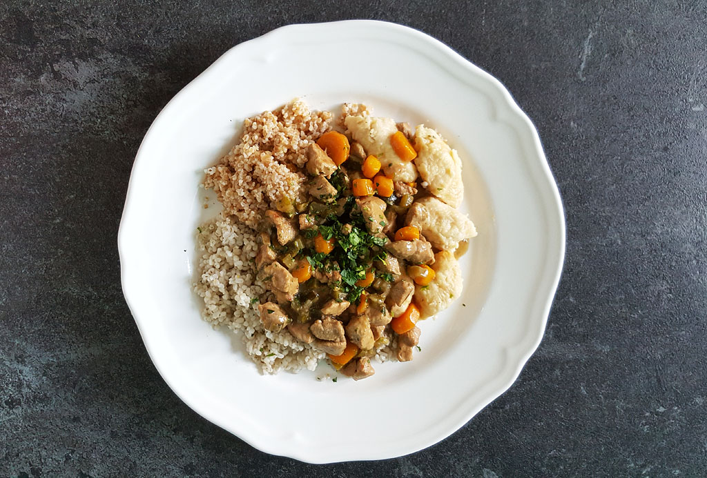 Podawaj z ziemniakami, kopytkami (np. z pietruszkową mini-kostką), pęczakiem, kaszą jęczmienną perłową, kaszą orkiszową lub kaszą gryczaną.
