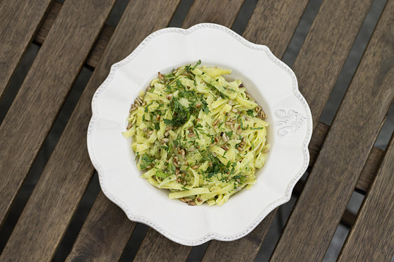- makaron bezglutenowy z pesto słonecznikowo – brokułowym,