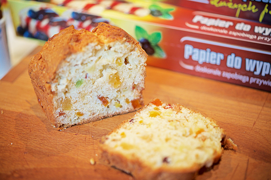 W pierwszej turze powstał ponadto keks z jabłkami i nutą pomarańczy, z mojego jak dotąd najbardziej udanego przepisu, zaimprowizowanego na święta kilka lat temu. Niewątpliwą zaletą tego keksu, jest to, że pozostaje bardzo długo świeży. To dodatek jabłek dodaje mu wilgoci i sprawia, że smakiem tego ciasta będziecie mogli rozkoszować się przez całe święta. A może nawet również w sylwestra. Jeśli odpowiednio dużo go upieczecie, oczywiście 😉