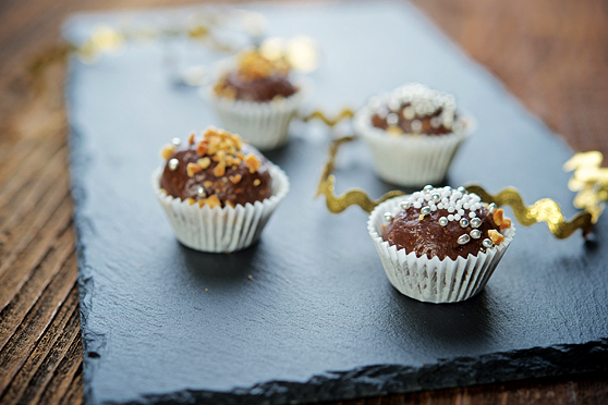 Nuta piernika znalazła się również w truflach piernikowych z białej czekolady i herbatników. Okazuje się, że by przygotować słodkie świąteczne co nieco piekarnik wcale nie jest konieczny. Poza tym trufelki mogą być fajnym prezentem. By stworzyć do nich opakowanie potrzeba jedynie zwykłej tekturki, kolorowej wstążki, woreczków do pieczenia Jana Niezbędnego oraz nieco zapału do pracy.