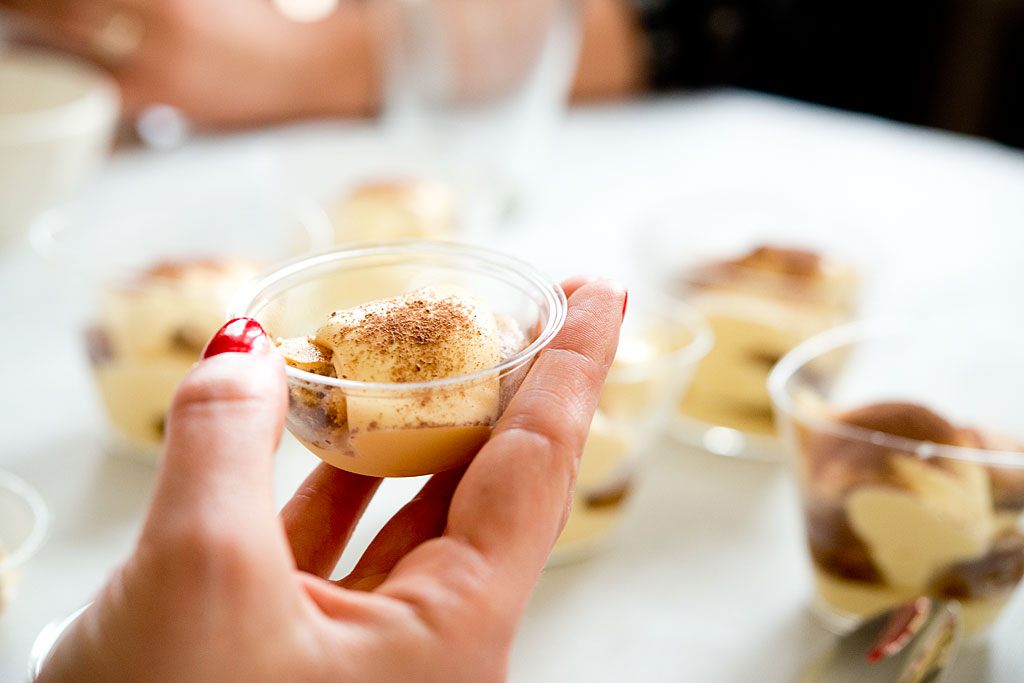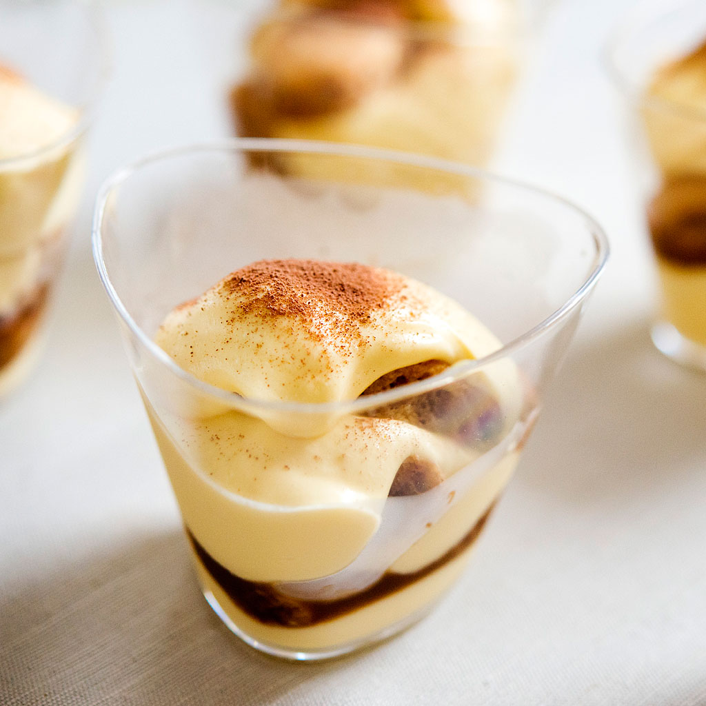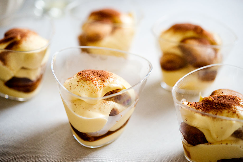 W miseczkach układaj warstwowo masę serową i biszkopty zmoczone w kawie. Przed podaniem oprósz wierzch deseru kakao.