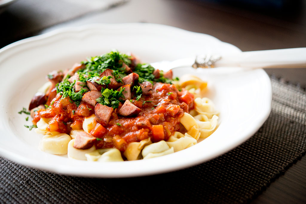 Potrawka z soczewicy, która w wersji ze zdjęcia przypomina wegetariańskie bolognese. Super smakuje również bez pomidorów, albo z dodatkiem mięsa mielonego, kurczaka lub wędliny. Do sosu można dodać także paprykę, cebulę albo świeże zioła (np. bazylię).