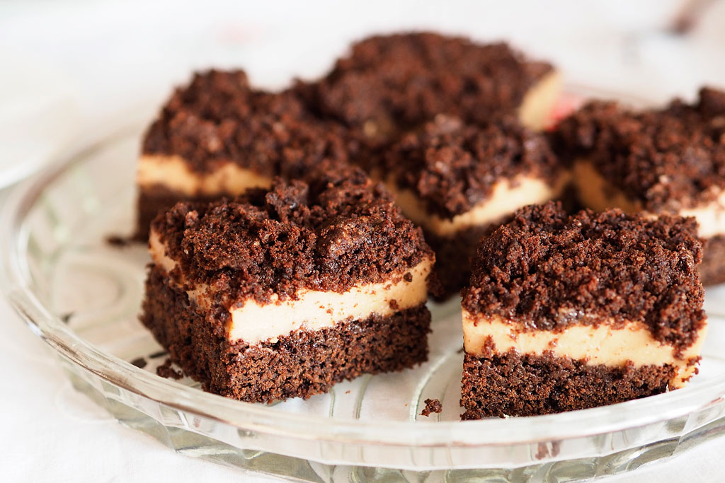 Wykończenie: Gotową masę wylej na ostudzone ciasto. Posyp okruszkami brownie i wstaw do lodówki by masa zastygła.
