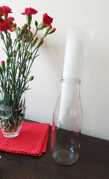 Z papieru do pieczenia można wygodnie uformować lejek i w ten sposób przelewać płyny.
