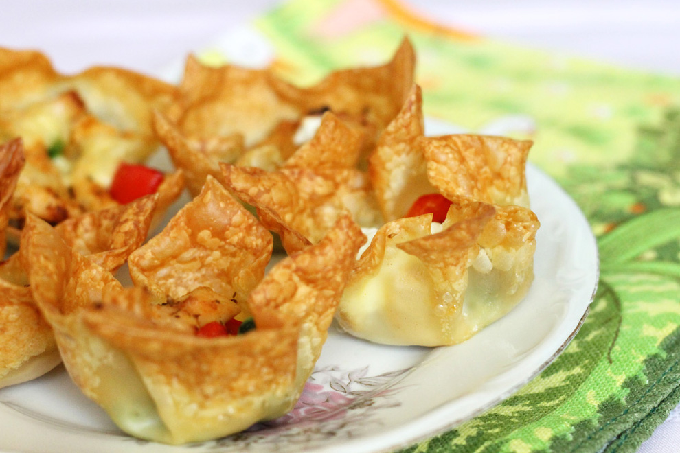 Jako nadzienie do moich sakiewek wykorzystałam kurczaka w przyprawie gyros, który został mi po wczorajszej zapiekance ziemniaczanej z kalafiorem. Dodałam do niego kozi twarożek (dokładnie taki), który bardzo przypadł mi do gustu. Gorąco polecam taki zestaw. Próbowałam zapiekać w makaronowych sakiewkach także jajka, ale tego akurat nie polecam bo wychodzą suche i twarde. Raczej pozostańcie przy mięsie, wędlinach i warzywach. Oczywiście możecie je zalać standardową mieszanką do tart i zapiekanek – śmietaną/jogurtem z rozbełtanym jajkiem. I doprawić ulubionymi ziołami.