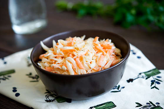Podczas weekendowych zakupów niespodziewanie wpadła mi w oko (a potem do koszyka) biała rzodkiew. W sklepie zupełnie nie miałam na nią pomysłu. Ale po przyjściu do domu dość szybko poskładałam z niej prostą surówkę. Doskonale pasuje do wszelkich mięs i oczywiście kanapek, jako ich warzywne uzupełnienie.