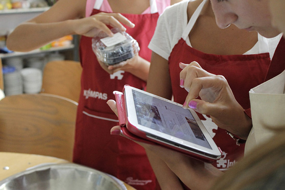 Program miałam możliwość budować zupełnie od początku i co roku doskonalić. Z kupowaniem potrzebnego sprzętu i egzotycznych produktów nie ma w KOMPASIE najmniejszych problemów, więc mogę robić naprawdę ciekawe zajęcia. W tym roku rozbudowałam program o kuchnię molekularną – bawimy się piankami z syfonów, przygotowujemy zdrowe napoje gazowane, winegrety metodą błyskawicznej infuzji, a perełki molekularne zdobią nasze dania. Na prośbę uczestników dodałam też blok obejmujący pracę z masą cukrową i marcepanową. Ponadto zamówiłam smaczne aromaty, które wykorzystujemy do wypieków. A pieczemy bardzo dużo (nie tylko na słodko rzecz jasna) ponieważ mamy bezpośredni dostęp do pieca konwekcyjnego. Ciasta robią ogromną furorę – młodzież najchętniej piekłaby je codziennie.