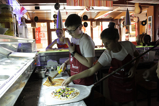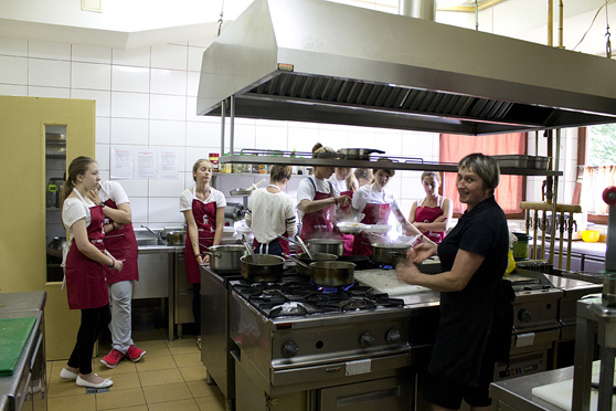 Większość zajęć odbywa się w ośrodku PANORAMA, w którym mieszkamy. Ale w programie są też trzy wyjścia do pobliskiej restauracji Hydropatia, gdzie uczestnicy gotują w restauracyjnej kuchni. Za nami są już warsztaty pieczenia pizzy w prawdziwym piecu z ogromnym kamieniem (rozgrzewanym do temperatury 340°C) i warsztaty lepienia pierogów. Ostatnie spotkanie poświęcone będzie przekąskom, które przygotujemy na bankiet finałowy.